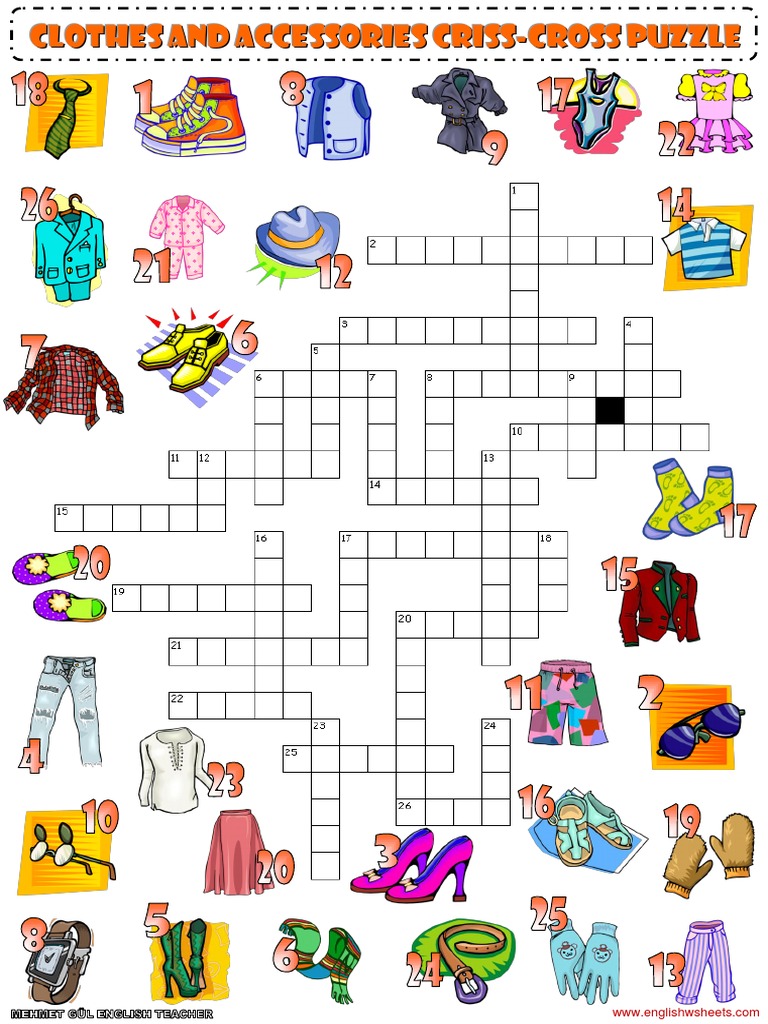Clothes And Accessories Criss Cross Crossword Puzzle Vocabulary Worksheet 1 Pdf Dress Codes Human Body
